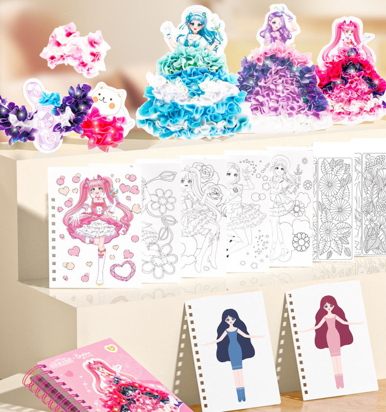 🎨 מארז יצירה שכל נסיכה תשמח לקבל, האוגדן משלב מספר סגנונות יצירה שונים: צביעה בצבעי מים (כלולים), הלבשת דמויות באמצעות מדבקות ושזירת חלקי בד מרהיבים בדמויות ליצירת מראה תלת מימד מרהיב ביופיו.