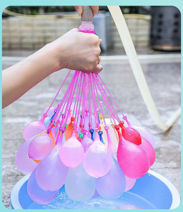 המארז שלנו יאפשר לכל בני המשפחה שעות של פעילות ומשחק וכולל בתוכו 3 צמות עם 37 בלונים בכל צמה מוכנים למילוי (רק לחבר לברז ולמלא במים) + 500 בלונים נוספים + גומיות למילוי בהמשך.