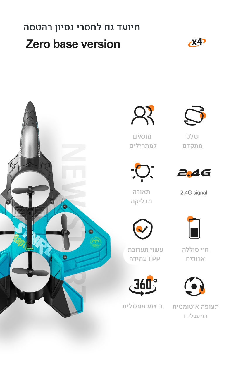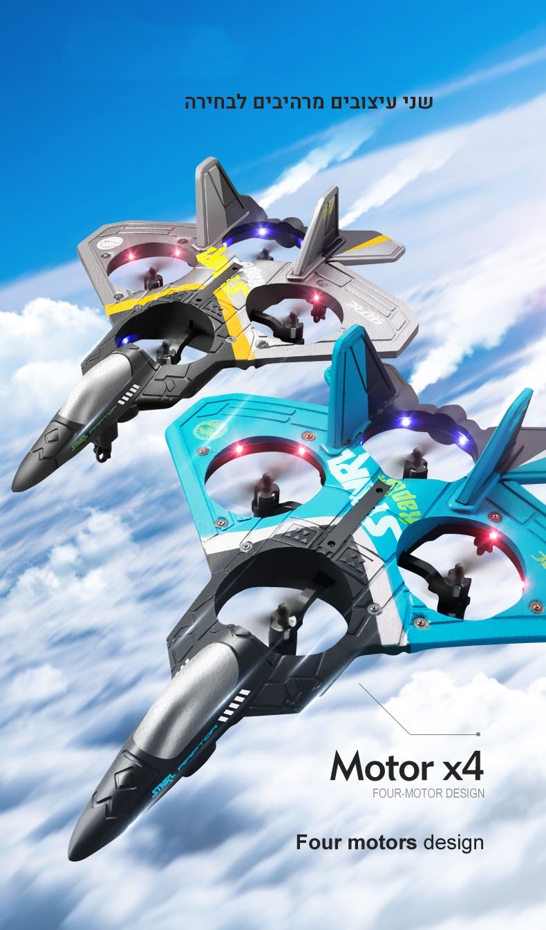 ✚ מטוס הקרב שונה ממטוסים אחרים בכך שאינו מצריך משטח המראה כדי להמריא! הוא ממריא ונוחת כמו רחפן באמצעות 4 מנועים חדישים המאפשרים לטייס לשלוט בו בקלות ולבצע פעלולים מרהיבים.