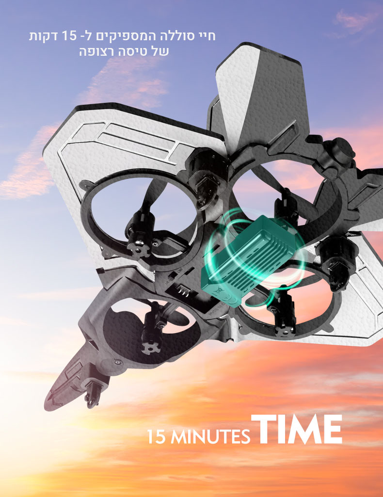 ✚ למטוס סוללה נטענת שמספיקה ל- 15 דקות רצופות של תעופה