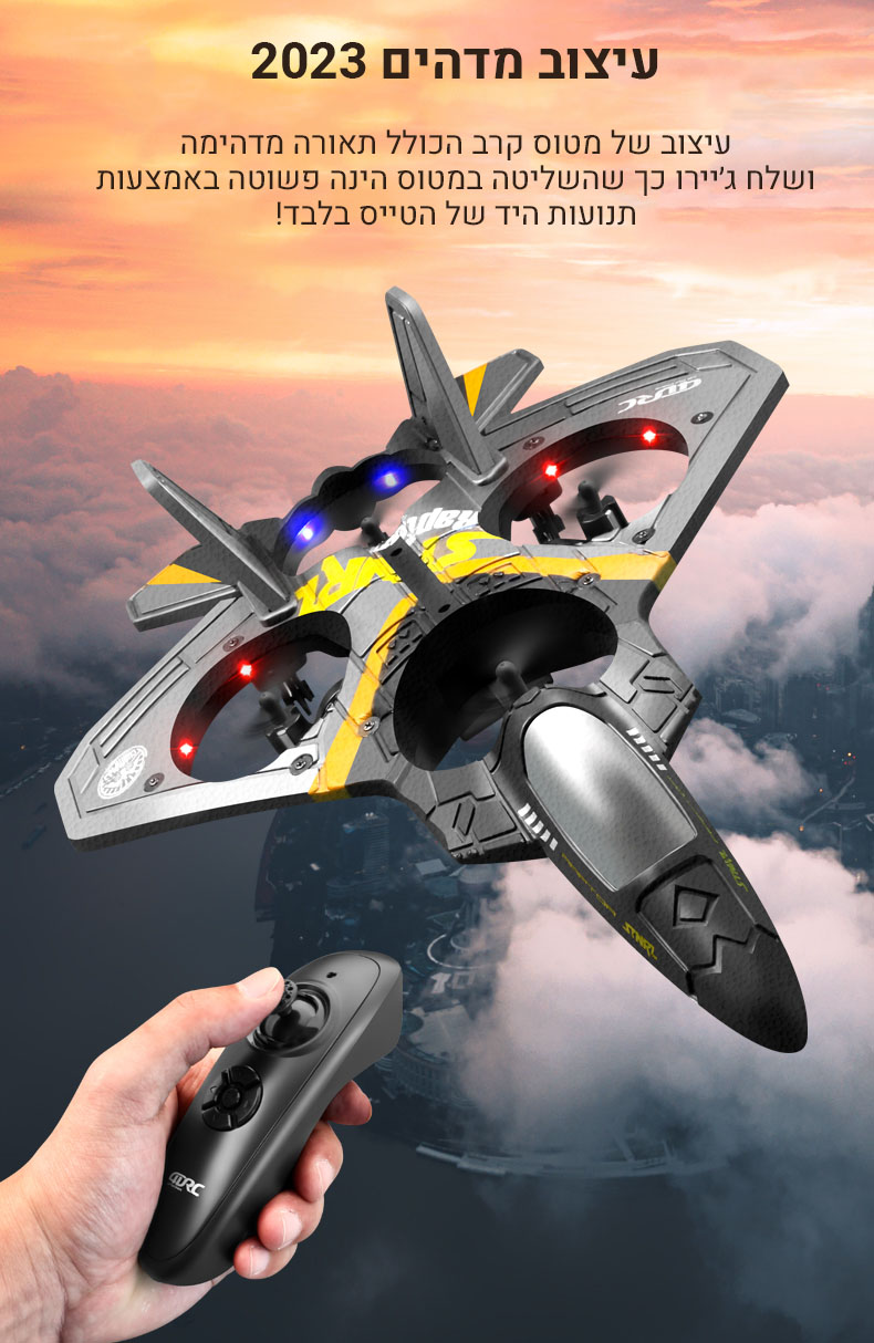 ✚ בזכות השלט והג׳יירו שבתוכו ניתן להטיס ולשוט בתנועות המטוס באמצעות הזזת פרק כף היד בלבד